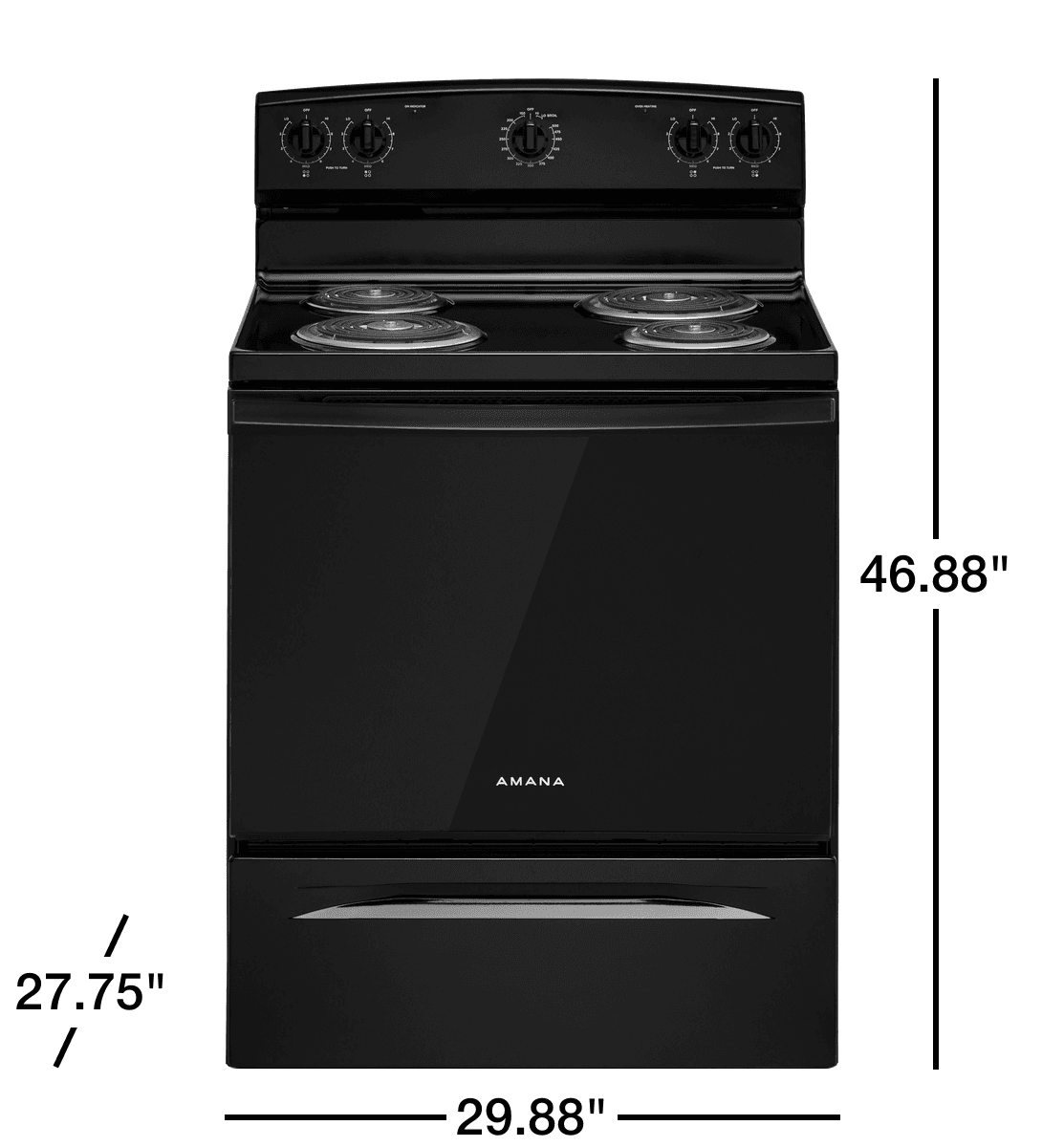 AMANA 30-inch Electric Range with Easy-Clean Glass Door, Storage Drawer, Temp Assure(TM) Cooking System - Black - ACR4203MNB