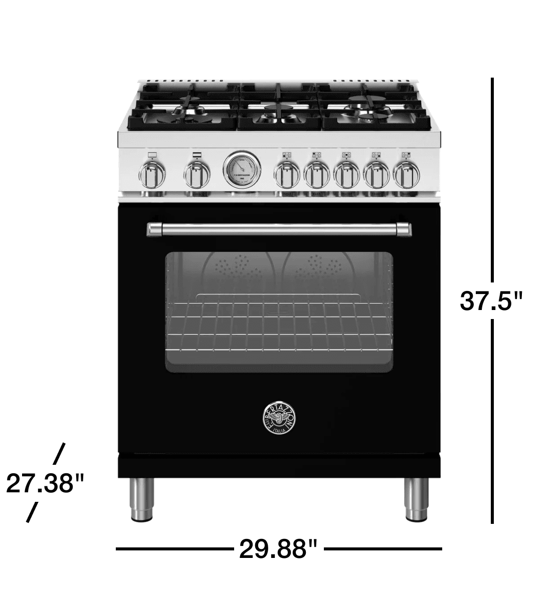 BERTAZZONI 30 inch All Gas Range with 5 Sealed Burners, 4.7 cu. ft. Oven Capacity, European Convection Oven, 5 Cooking Modes - Nero Matt - MAS305GASNEV