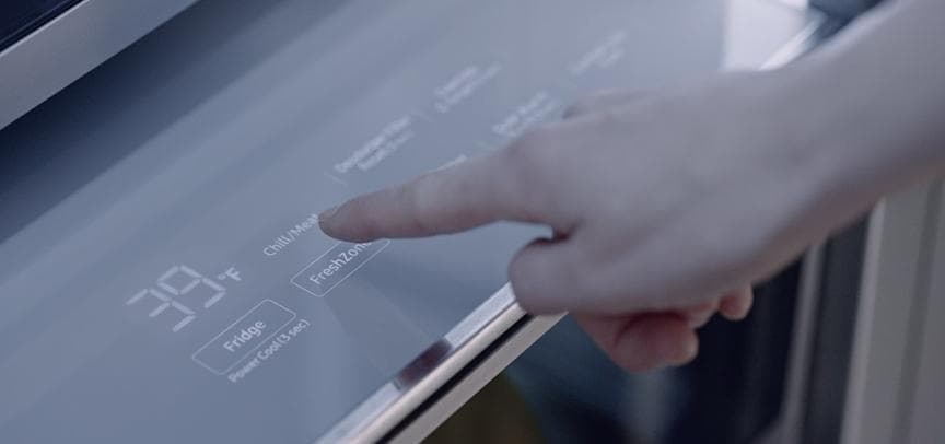 Touch to reveal a display that regulates temperature to preserve freshness.
