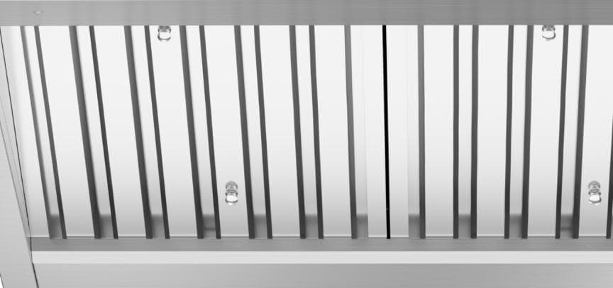 Easy to clean stainless steel baffle filter efficiently absorbs smoke and odors while filtering out the grease.