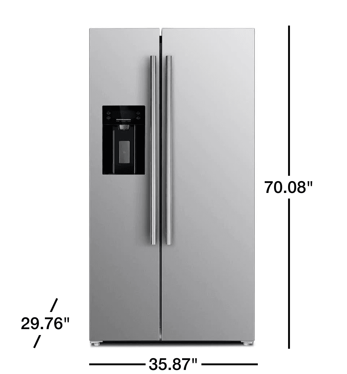 Introducing the FORNO Salerno 36" Side by Side 20 Cu. Ft Stainless Steel Refrigerator with Ice Maker, model FFRBI184436SB, available now at Airport Appliance. This beautifully designed side-by-side refrigerator is the perfect blend of elegance and functionality, bringing a sleek, modern look to any kitchen with its stainless steel finish and ergonomic design. The spacious 20 cubic feet of storage is efficiently divided between the fridge and freezer sections, providing ample space to store all your perishables and frozen goods in an organized manner. The FORNO Salerno is equipped with advanced features such as an ice maker that ensures you always have ice on hand for beverages or cooking needs. Its precise temperature controls maintain optimal conditions within the refrigerator and freezer, preserving the freshness and nutritional value of different foods. Additionally, the unit's energy-efficient technology helps reduce electricity consumption while still delivering exceptional cooling performance.