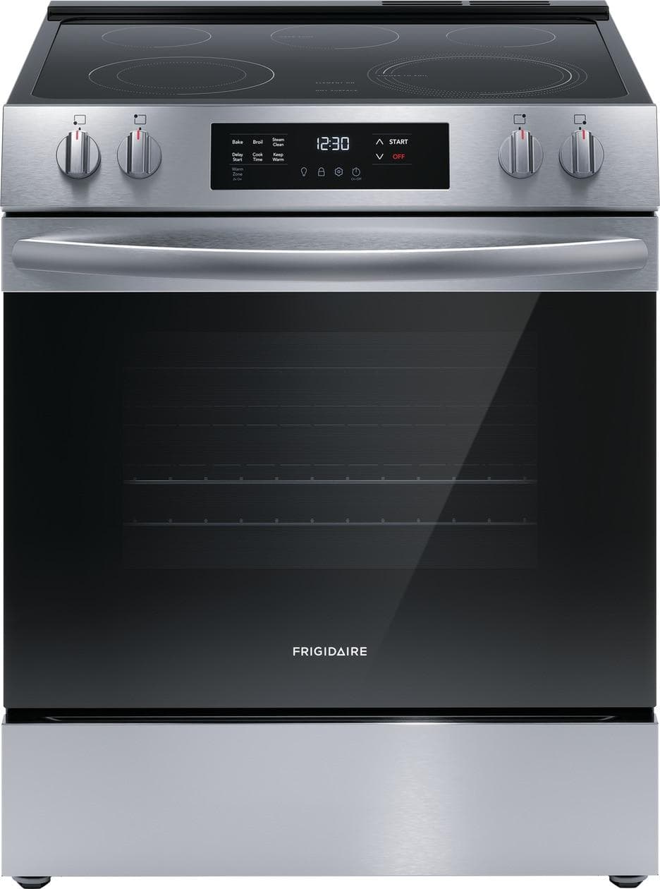 FRIGIDAIRE 30 Inch Freestanding Electric Range with 5.3 Cu. Ft. Capacity, 5 Smoothtop Elements, EvenTemp Element, SpaceWise Element, Keep Warm Zone - FCFE3062AS