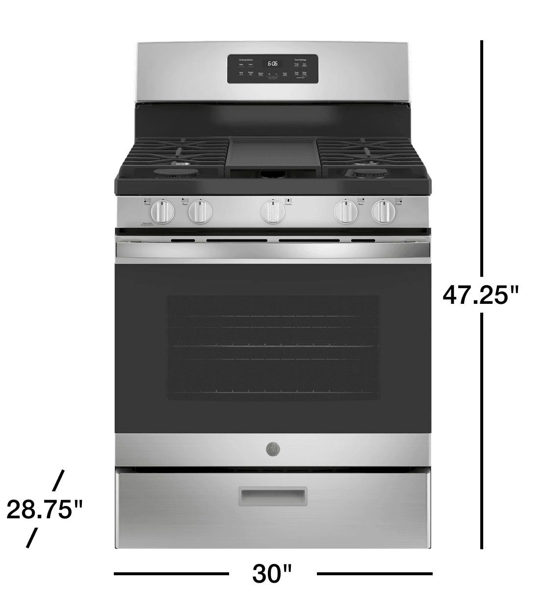 GE 30" 5.0 cu. ft. Free-Standing Gas Range with 5 Sealed Burners and Griddle - JGBS66REKSS