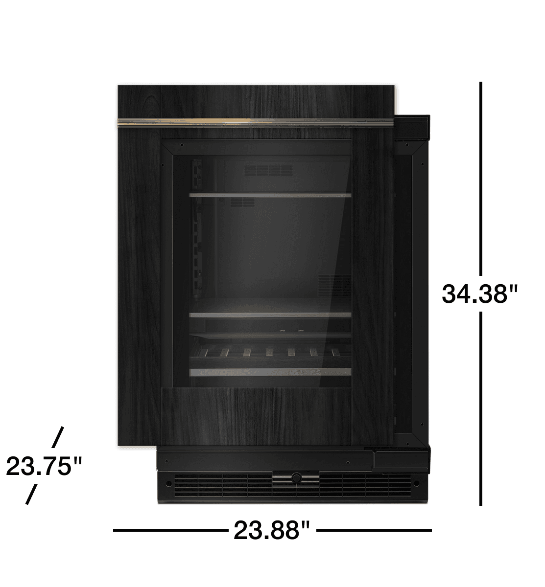The JUBFR242HX Under Counter Refrigerator by Jenn-Air offers a sleek and functional solution for cooling in various spaces such as butler's pantries, prep areas, bars, or entertainment rooms. Featuring thick glass shelves and bold Obsidian interiors, this refrigerator combines style with performance. With its dual temperature zones and preset options, it provides customizable cooling for beverages and snacks, ensuring they're always at the perfect temperature. This product is part of the luxury sub-category and premium sub-category series.
