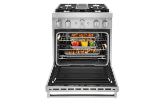 The KITCHENAID 30'' Smart Commercial-Style Gas Range KFGC500JBK is a perfect blend of professional-grade performance and modern technology, designed to elevate your culinary experience. This sleek and stylish gas range is crafted with precision to meet the demands of both home cooks and professional chefs. Its robust construction and commercial-style design make it a standout addition to any kitchen. The range features a powerful burner system that delivers precise heat control, allowing you to simmer delicate sauces or sear meats to perfection. With its smart capabilities, you can control and monitor your cooking from your smartphone, ensuring convenience and efficiency. The spacious oven offers even heat distribution for consistent baking and roasting results. Whether you're preparing a weeknight dinner or hosting a gourmet feast, the KITCHENAID 30'' Smart Commercial-Style Gas Range is your reliable partner in the kitchen.