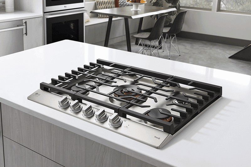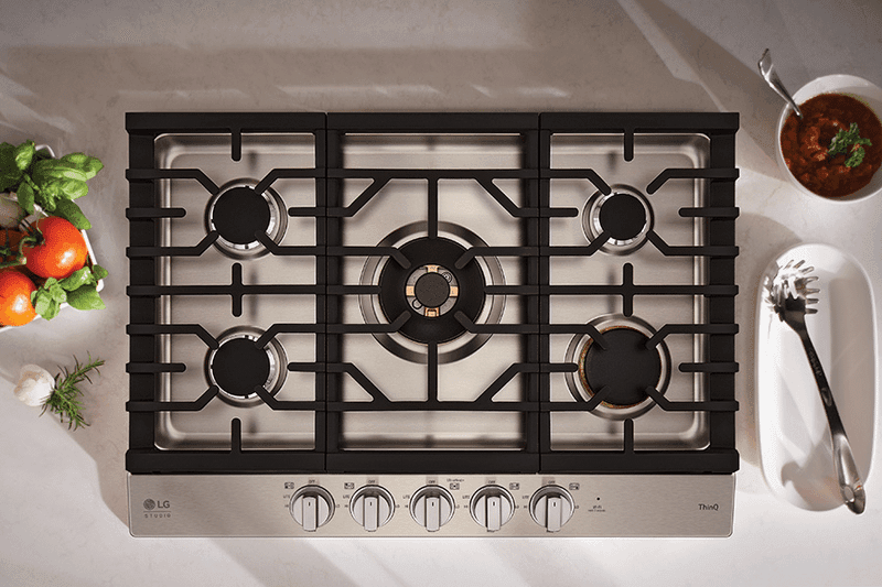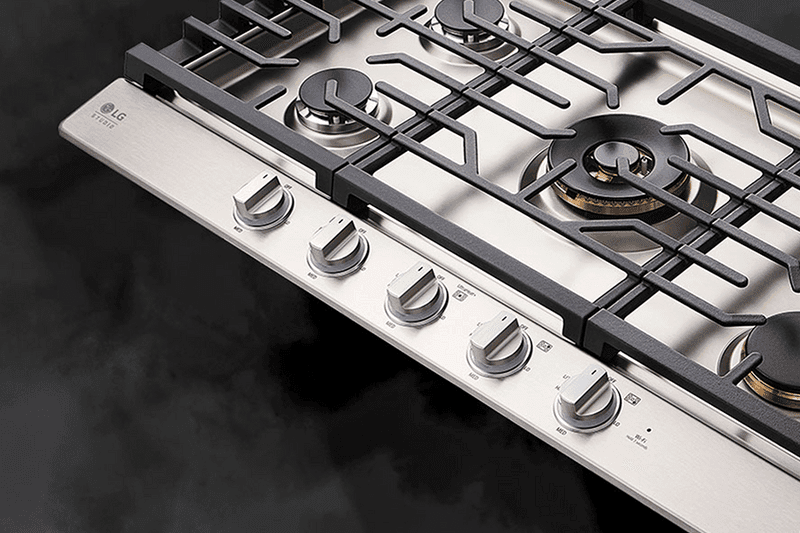 LG Studio 30" UltraHeat(TM) Gas Cooktop with EasyClean(R), 5 Sealed Burners, Cast Iron Grates, LED Illuminated Knobs - Stainless Steel