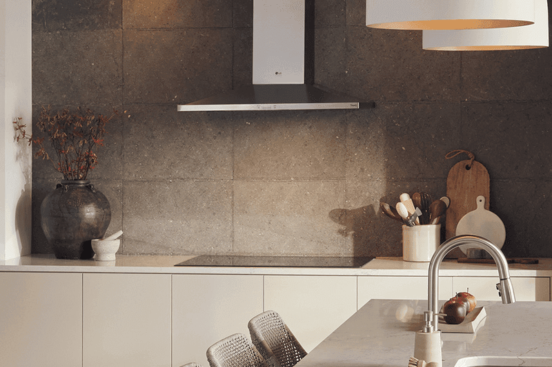 Wall Mount Design: Offers a stylish, modern look and frees up overhead space in the kitchen.