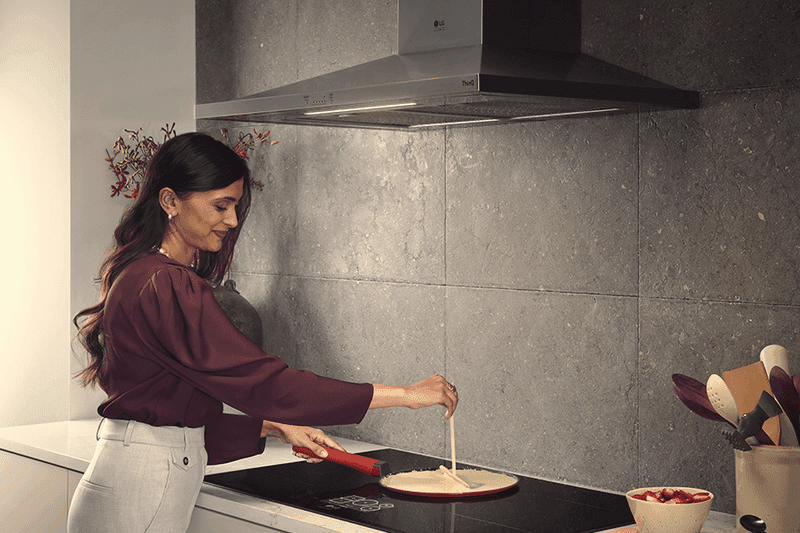 Take control over lingering cooking odors by accessing hood vent functions remotely. Monitor and control air movement, operate LED lights, and even turn the vent fan on and off from your Android or iOS device using the LG SmartThinQ(R) app.