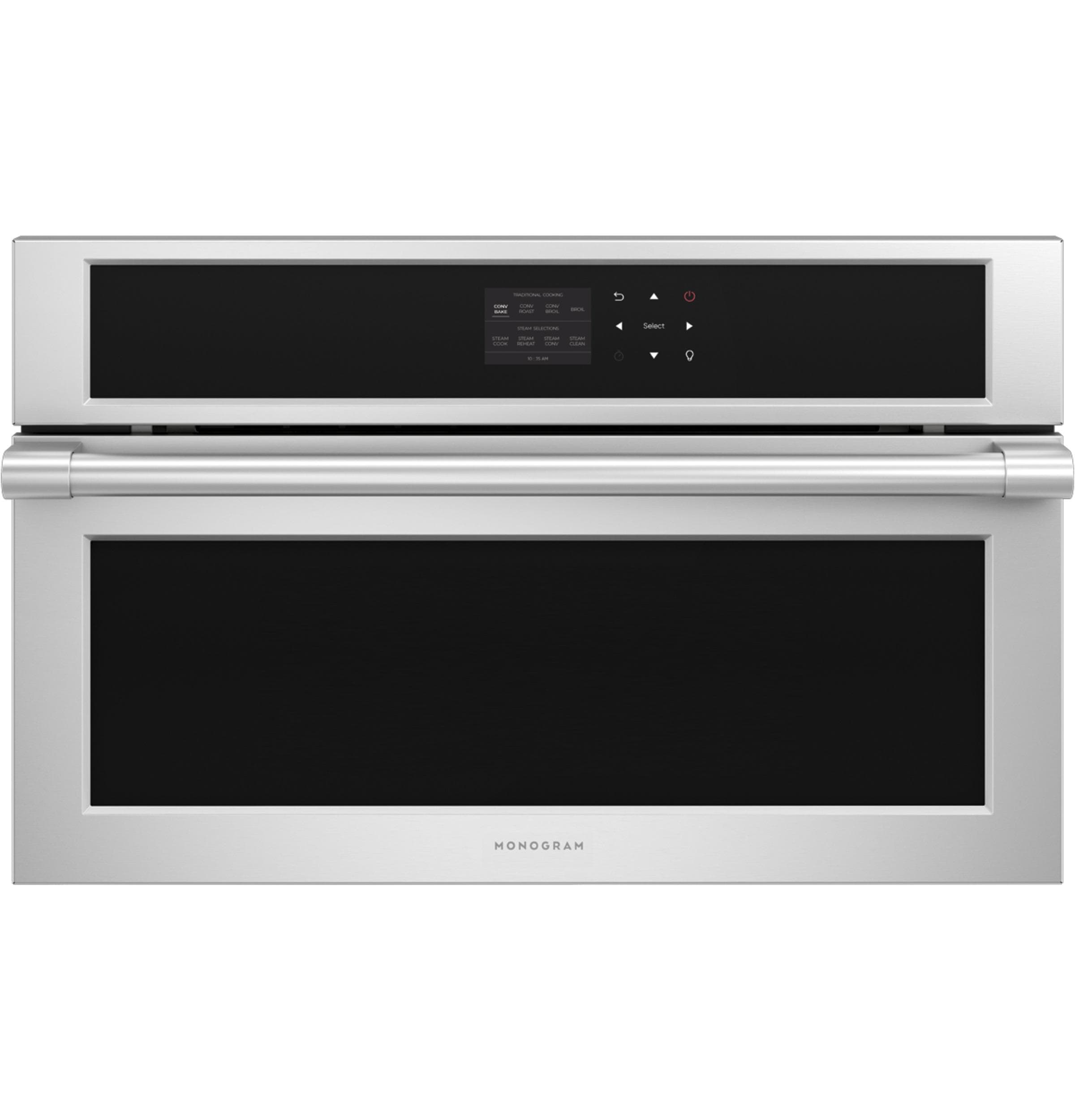 Monogram 30 Inch Single Steam Electric Wall Oven with 1.3 Cu. Ft. Total Capacity, Steam and Convection, Steam Clean, True European Convection, Broil - Stainless Steel