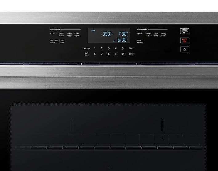 Samsung 30" Smart Single Wall Oven with 5.1 Cu. Ft. Capacity, WiFi, Digital Touch Controls, Blue Ceramic Interior, Delay Start, Broiler, Adjustable Racks in Stainless Steel