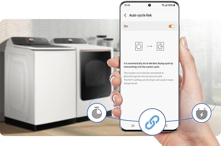 Wi-Fi Connectivity: The washer is equipped with Wi-Fi connectivity, allowing you to remotely control and monitor your laundry from your smartphone or tablet using the Samsung SmartThings app.