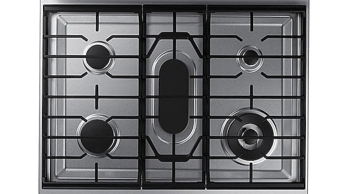 This 5-burner cooktop includes 2 power burners and continuous cast iron edge-to-edge grates, allowing you to easily slide your pots and pans across more usable cooktop space and adding a more premium look to your kitchen. Use the simmer burner to cook your favorite sauces.