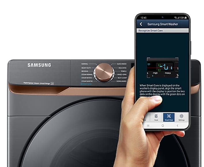 Easy troubleshooting from the convenience of your smartphone. Smart Care interacts with your washer and dryer to perform an immediate diagnosis and offer quick solutions.