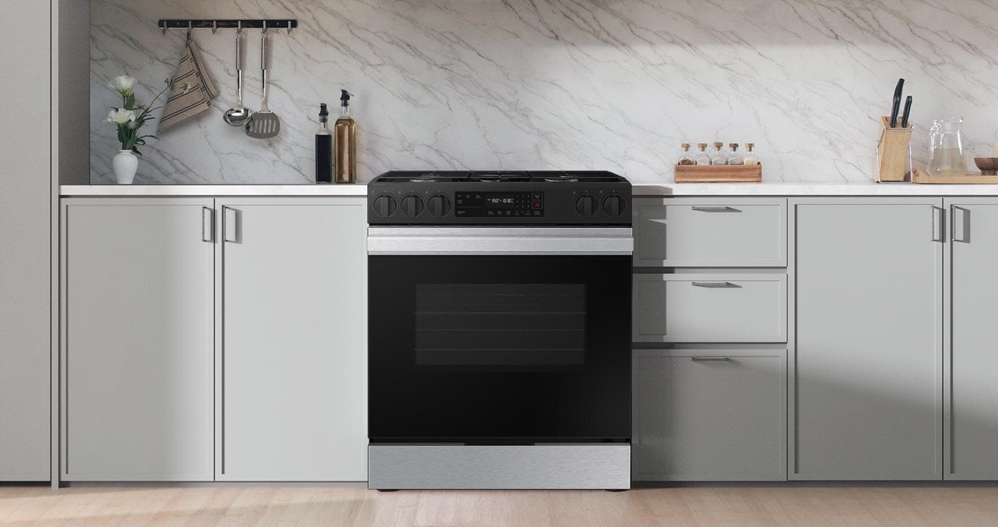 Samsung Bespoke 6.0 cu. ft. Smart Slide-In Gas Range with Precision Knobs, Glass Touch Controls, 17K BTU Power Burner, Storage Drawer - Stainless Steel