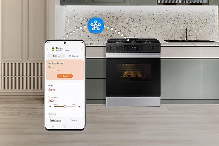 Search recipes, plan meals and pre-heat your oven from your phone with the SmartThings App or your favorite voice assistant. SmartThings Food learns your preferences to recommend personalized recipes and create weekly meal plans.SmartThings Energy lets you monitor and manage your range's power usage.