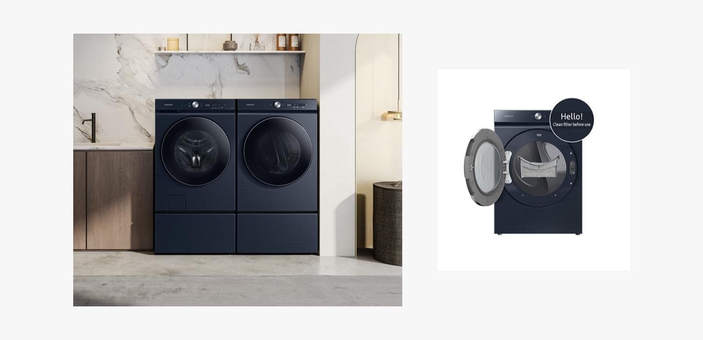 SAMSUNG Bespoke 7.6 cu. ft. Ultra Capacity Electric Dryer with AI Optimal Dry and Super Speed Dry in Brushed Navy - DVE53BB8900D