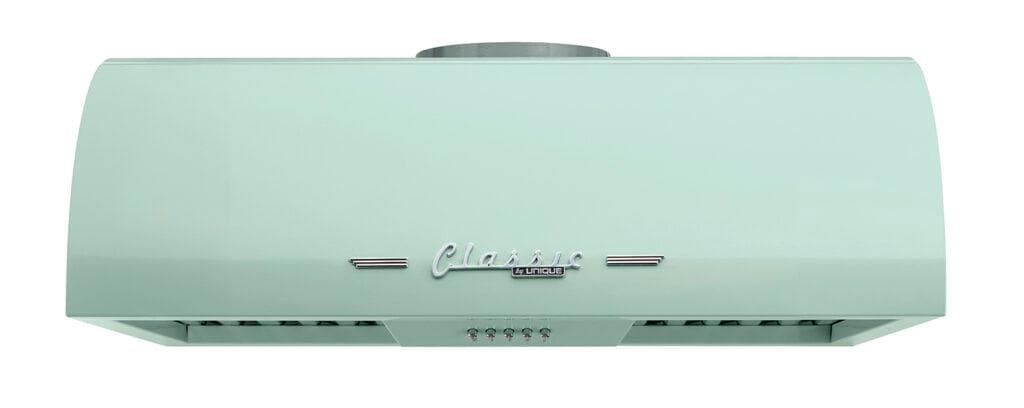 The Unique Appliances 24" 500 CFM Ducted Under Cabinet Range Hood UGP24CRRHLG in Summer Mint Green infuses a vibrant and refreshing aesthetic into any kitchen space while providing exceptional ventilation. Perfect for those who enjoy a dash of vintage style mixed with modern functionality, this range hood sports a delightful summer mint green finish that brightens up the kitchen. Equipped with a powerful 500 CFM motor, it efficiently eliminates smoke, grease, and odors, ensuring a clean cooking environment. The LED lighting enhances visibility on the cooking surface, making food preparation easier and safer. Designed to fit neatly under cabinets, this range hood optimizes kitchen space without sacrificing performance, making it an ideal choice for both small and large cooking areas.