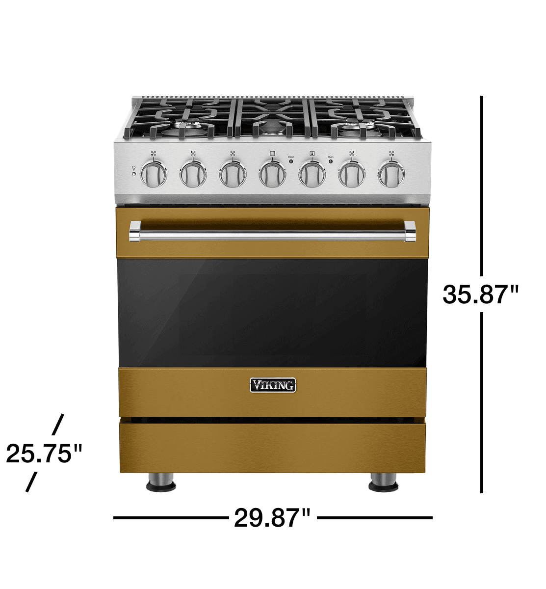 VIKING 3 Series 30" Self-Cleaning Dual Fuel Range with 5 Sealed Burners, 4.7 Cu. Ft. Oven Capacity, Rapid Ready(TM) Preheat - Golden Hour, LP - RVDR33025BGHLP