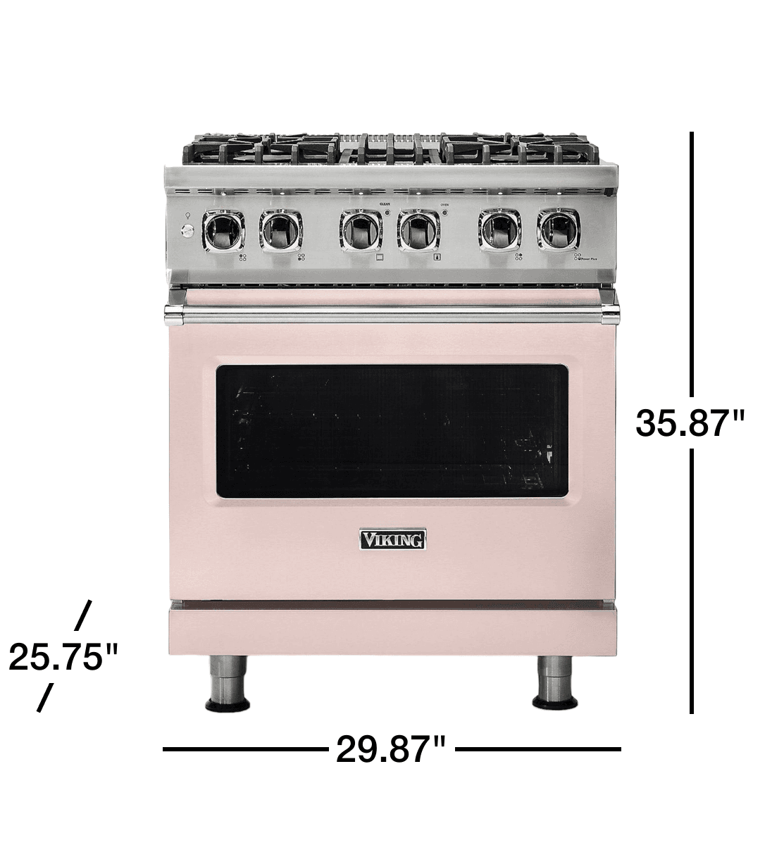 -Elevate your culinary experience with the Viking 30"W./24"D. Dual Fuel Self-Clean Sealed Burner Range, a perfect blend of style, performance, and convenience. Designed for the modern kitchen, this stunning range in a sophisticated blush finish is sure to be the centerpiece of your cooking space.