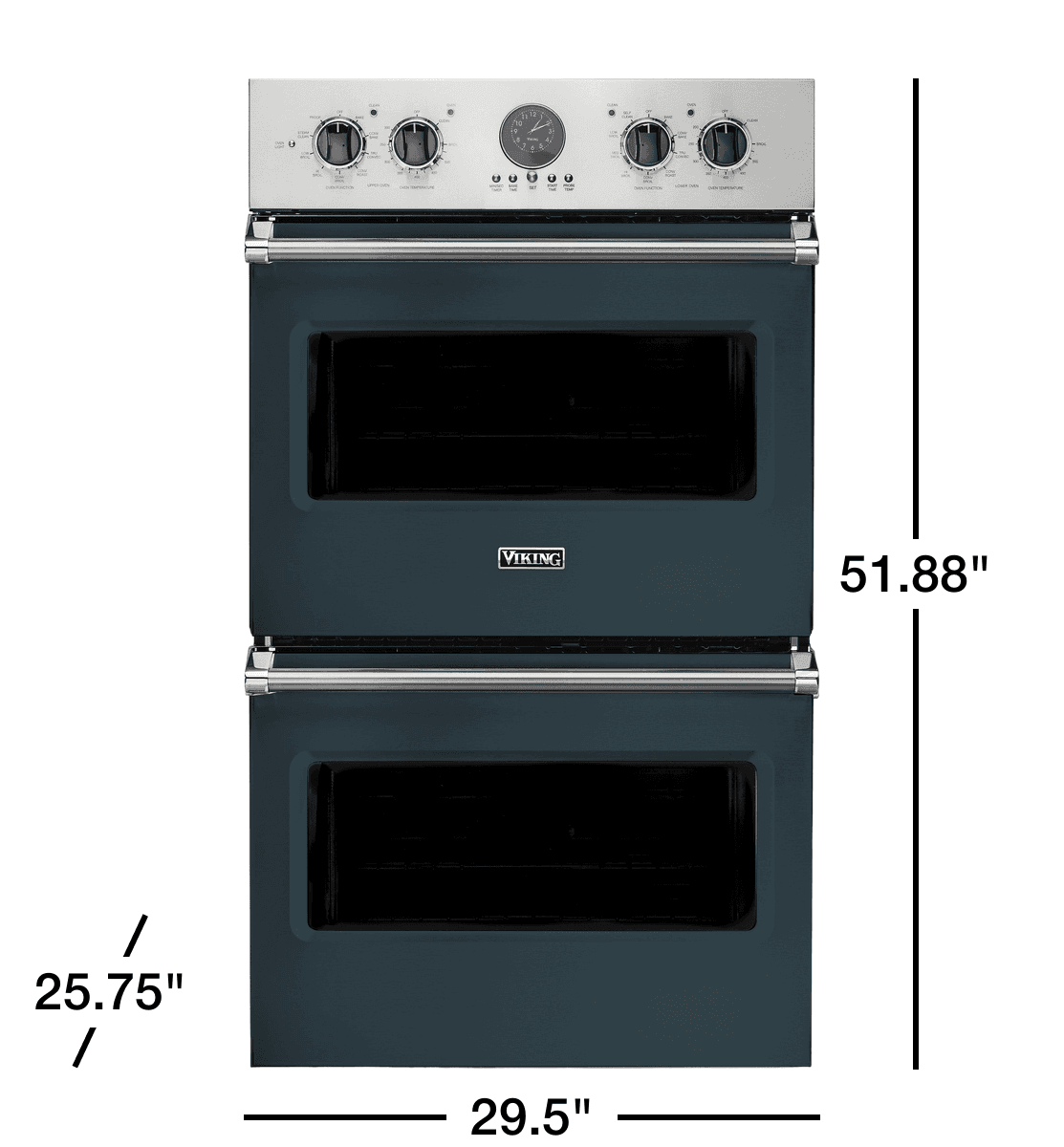 -Elevate your culinary experience with the Viking 30"W. Electric Double Thermal Convection Oven in the sophisticated Squall finish. Designed for the modern kitchen, this premium appliance combines cutting-edge technology with timeless elegance, ensuring every meal is a masterpiece.