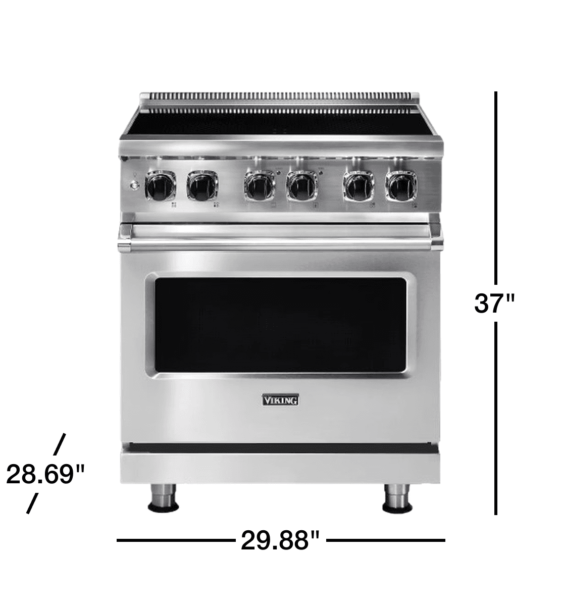-Elevate your culinary experience with the Viking 30"W./24"D. Induction Self-Clean Range, model VIR53024BSS. This state-of-the-art appliance combines cutting-edge technology with sleek, professional design to bring you unparalleled performance in your kitchen.