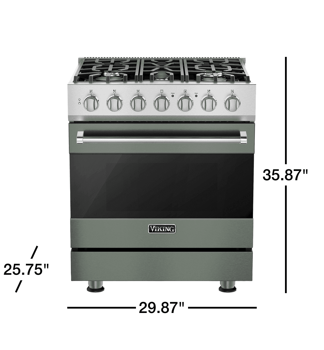The Viking RVDR33025BEU range is a versatile and powerful cooking appliance that combines style with high functionality. This freestanding dual-fuel range features five permanently sealed burners, each designed to meet various cooking needs with a wide range of BTU ratings, including a new fifth burner. Viking’s exclusive SureSpark Ignition System guarantees consistent ignition at any burner setting. The continuous grate design allows for the effortless movement of pots and pans across the burners. At the core of the range’s superior cooking capabilities is the Vari-Speed Dual Flow Convection system, which uses the industry’s largest convection fan for optimal airflow and even heat distribution. The large-capacity oven, equipped with the RapidReady preheat system, heats up quickly to minimize wait times. The 10-pass broiler with a heat reflector offers intense, precise heat for a variety of broiling applications. Cleaning and maintenance are simplified with the self-clean convection oven, porcelainized burner box, and removable knobs and grates. With Viking's commitment to innovation and quality, the RVDR33025BEU is a reliable choice for any kitchen. Available at Airport Appliance.