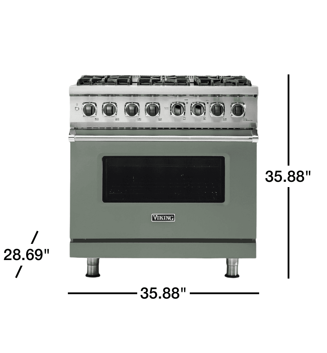 Viking 36"W./24"D. Dual Fuel Self-Clean Sealed Burner Range - 6 Burners - Eucalyptus VDR5366BEU -Elevate your culinary experience with the Viking 36"W./24"D. Dual Fuel Self-Clean Sealed Burner Range, a masterpiece of design and functionality. This premium range, finished in a sophisticated Eucalyptus hue, seamlessly blends style with performance, making it a stunning centerpiece for any modern kitchen. This product is part of the luxury sub-category and premium sub-category series.