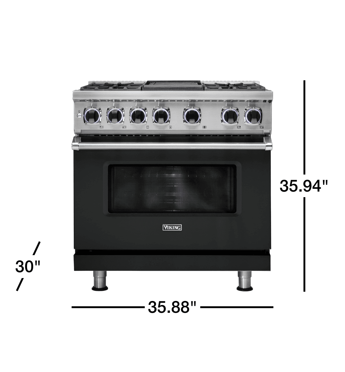 "Viking 36""W./24""D. Dual Fuel Sealed Burner Range - 4 Burners/Griddle - Antique Bronze - LP VDR73624GANLP -Elevate your culinary experience with the Viking 36""W./24""D. Dual Fuel Sealed Burner Range, a masterpiece of design and functionality. This premium range, finished in a stunning Antique Bronze, seamlessly blends timeless elegance with modern performance, making it the centerpiece of any sophisticated kitchen.