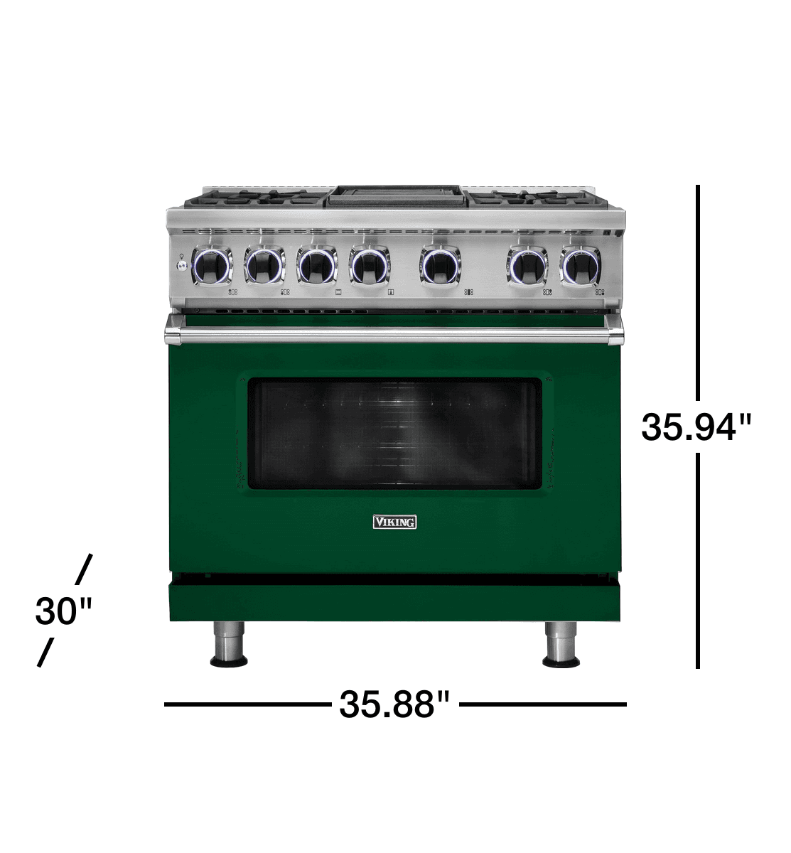 Viking 36"W./24"D. Dual Fuel Sealed Burner Range - 4 Burners/Griddle - Ivy - LP VDR73624GIVLP -Elevate your culinary experience with the Viking 36"W./24"D. Dual Fuel Sealed Burner Range, a masterpiece of design and functionality. This premium range, finished in a sophisticated Ivy hue, seamlessly blends into any kitchen decor while delivering professional-grade performance. This product is part of the luxury sub-category and premium sub-category series.