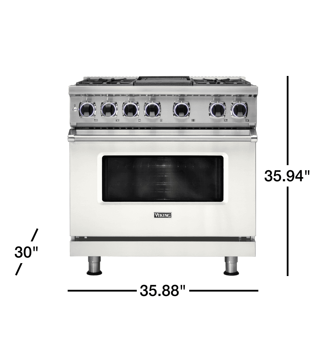 Viking 36"W./24"D. Dual Fuel Sealed Burner Range - 4 Burners/Griddle - Pure White (Model: VDR73624GPW) -Elevate your culinary experience with the Viking 36"W./24"D. Dual Fuel Sealed Burner Range, a masterpiece of design and functionality. This premium range, finished in a sleek Pure White, seamlessly blends into any modern kitchen while delivering professional-grade performance. This product is part of the luxury sub-category and premium sub-category series.