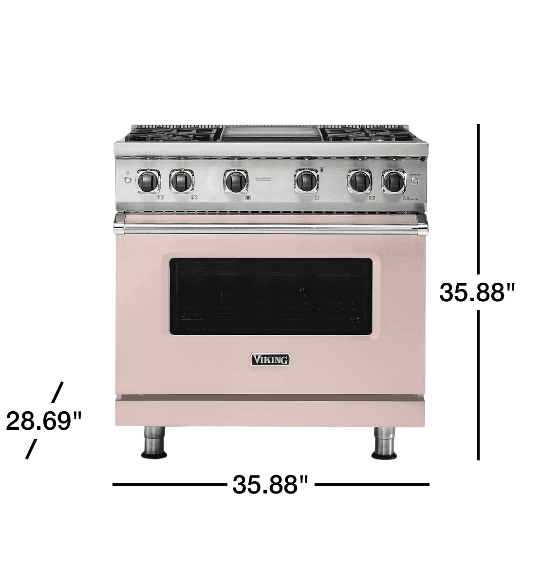 Viking 36"W./24"D. Gas Sealed Burner Range - 4 Burners/Griddle - Blush VGR5364GBH -Elevate your culinary experience with the Viking 36"W./24"D. Gas Sealed Burner Range, a perfect blend of professional-grade performance and stunning design. The VGR5364GBH model, finished in an elegant blush hue, is not just an appliance but a statement piece for your kitchen. This product is part of the luxury sub-category and premium sub-category series.