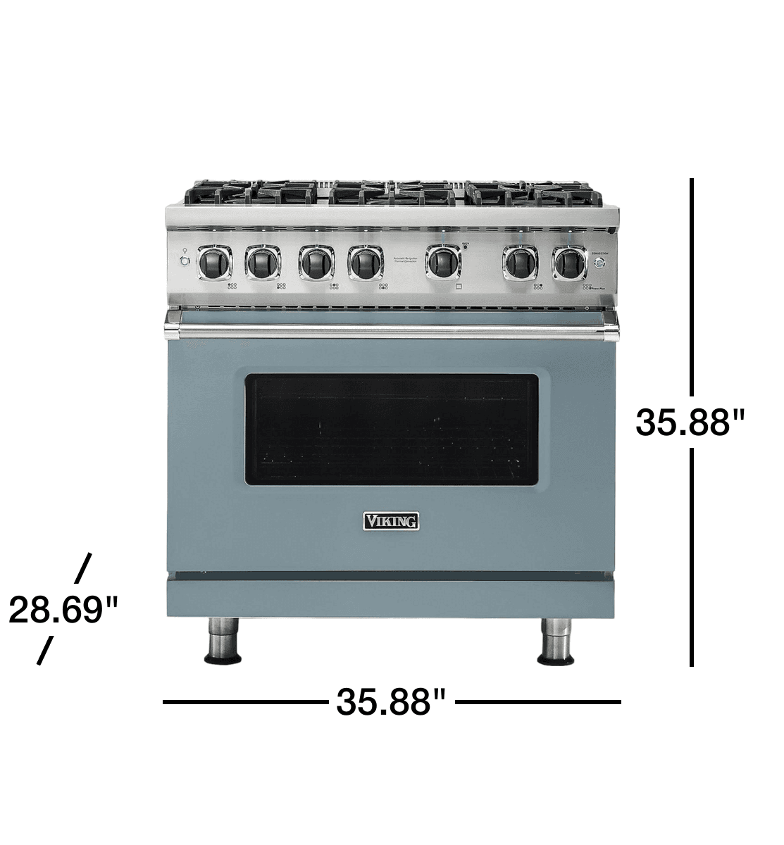 Viking 36"W./24"D. Gas Sealed Burner Range - 6 Burners - November Sky VGR5366BNS -Elevate your culinary experience with the Viking 36"W./24"D. Gas Sealed Burner Range in the stunning November Sky finish. This professional-grade range is designed for both the passionate home cook and the seasoned chef, offering unparalleled performance and style. This product is part of the luxury sub-category and premium sub-category series.