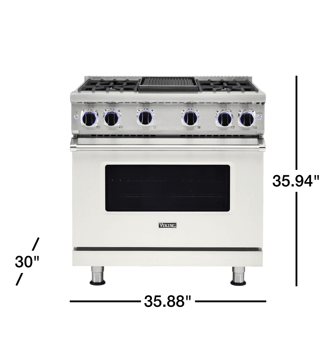 Viking 36"W./24"D. Gas Sealed Burner Range - 4 Burners/Griddle - Pure White VGR73624GPW