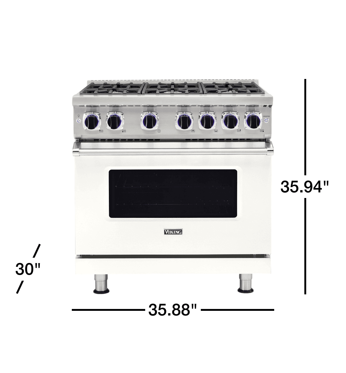 -Elevate your culinary experience with the Viking 36"W./24"D. Gas Sealed Burner Range, a masterpiece of design and functionality. This premium range, finished in a stunning Pure White, is the epitome of modern kitchen elegance and professional-grade performance. This product is part of the luxury sub-category and premium sub-category series.