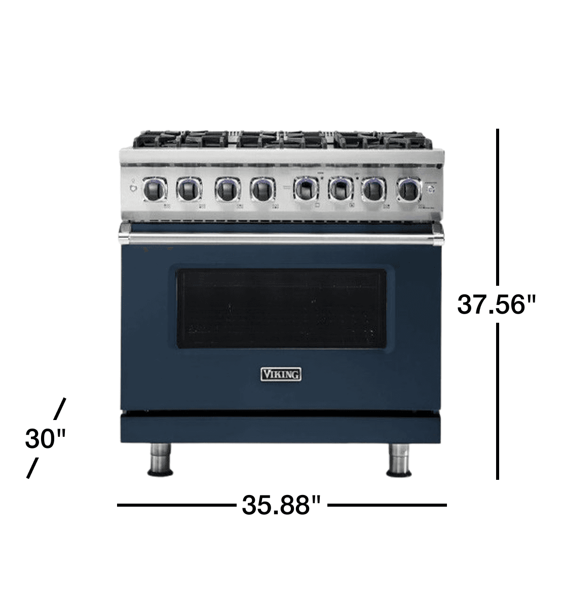 Viking 36 Inch Freestanding Gas Range with 6 Sealed Burners, 5.1 Cu. Ft. Capacity, BlackChrome(TM) Knobs, SureSpark(TM) Ignition System, VariSimmer(TM) Setting - Slate Blue, LP