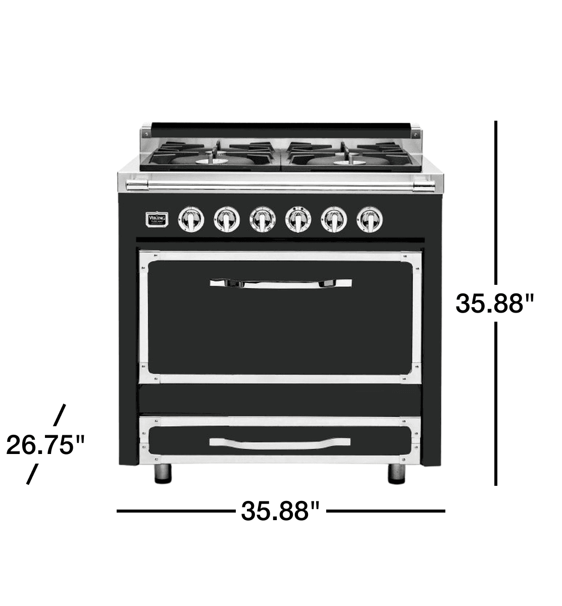 VIKING 36"W. Tuscany Dual Fuel Range with 4 Sealed Burners, 3.8 Cu. Ft. Oven Capacity, Porcelain Coated Cast Iron Grates, Storage Drawer - Antique Bronze - TVDR3614BAN
