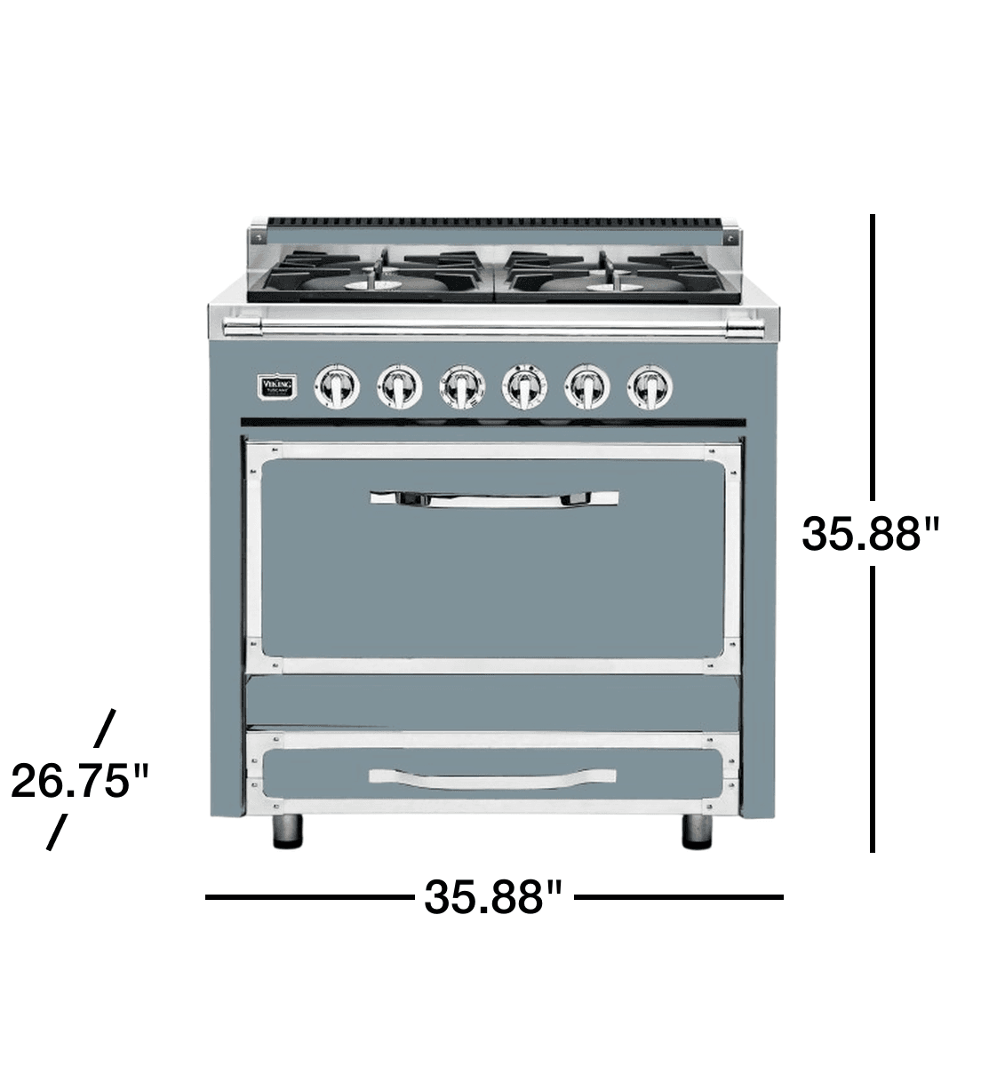 Viking 36"W. Tuscany Dual Fuel Range with 4 Sealed Burners, 3.8 Cu. Ft. Oven Capacity, Porcelain Coated Cast Iron Grates, Storage Drawer - November Sky