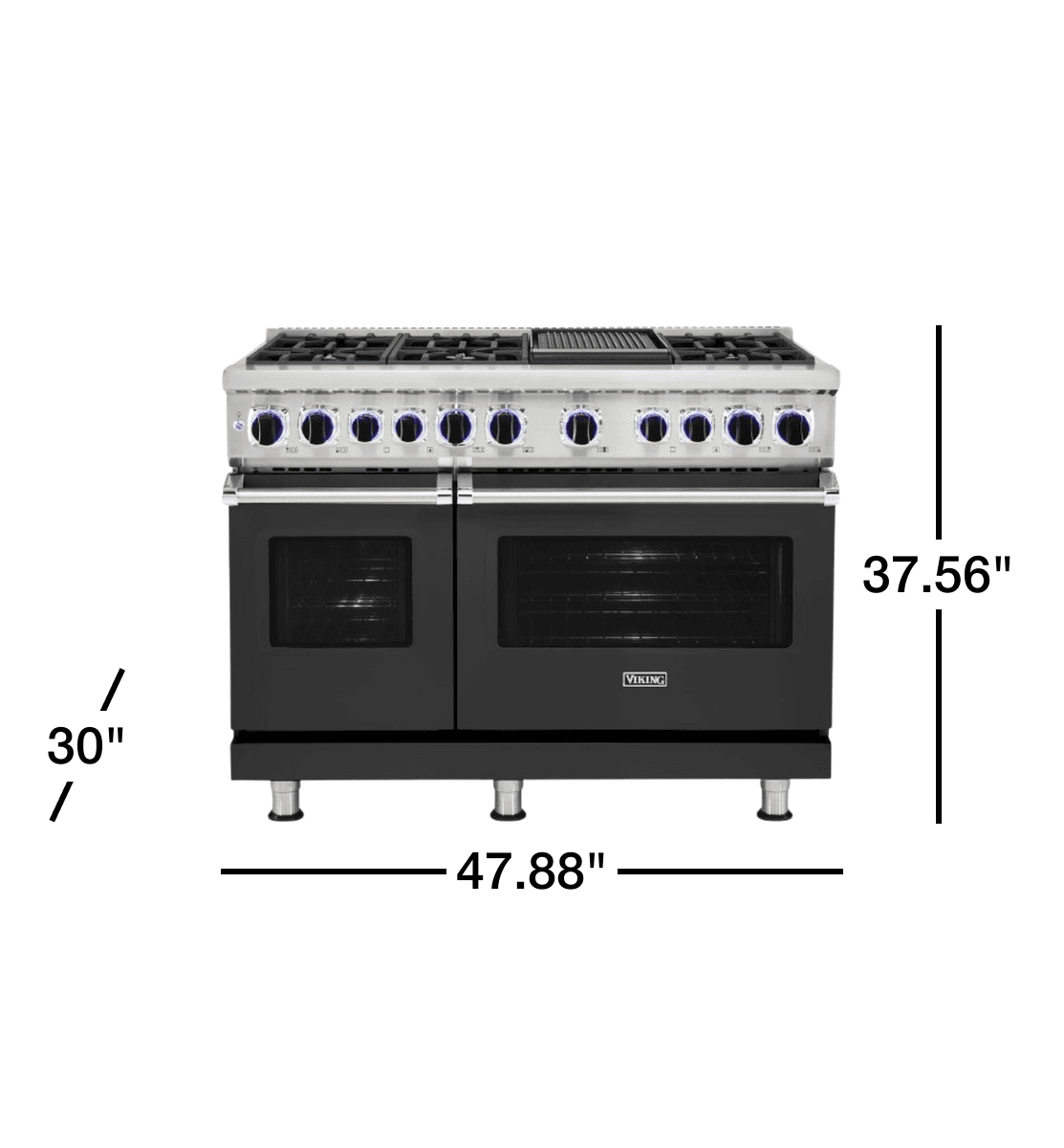 Viking 48" Dual Fuel Range with Six Sealed Burners, Integrated Griddle, Continuous Grates, Self-Clean - Cast Black, LP