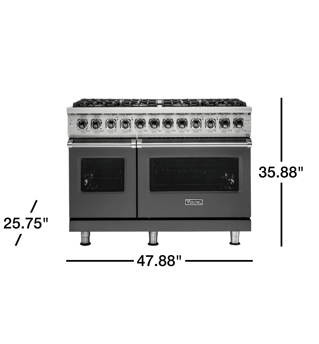 -Elevate your culinary experience with the Viking 48"" Dual Fuel Self-Clean Sealed Burner Range in a stunning Damascus Gray finish. This professional-grade range is designed for the serious home chef who demands both style and performance.