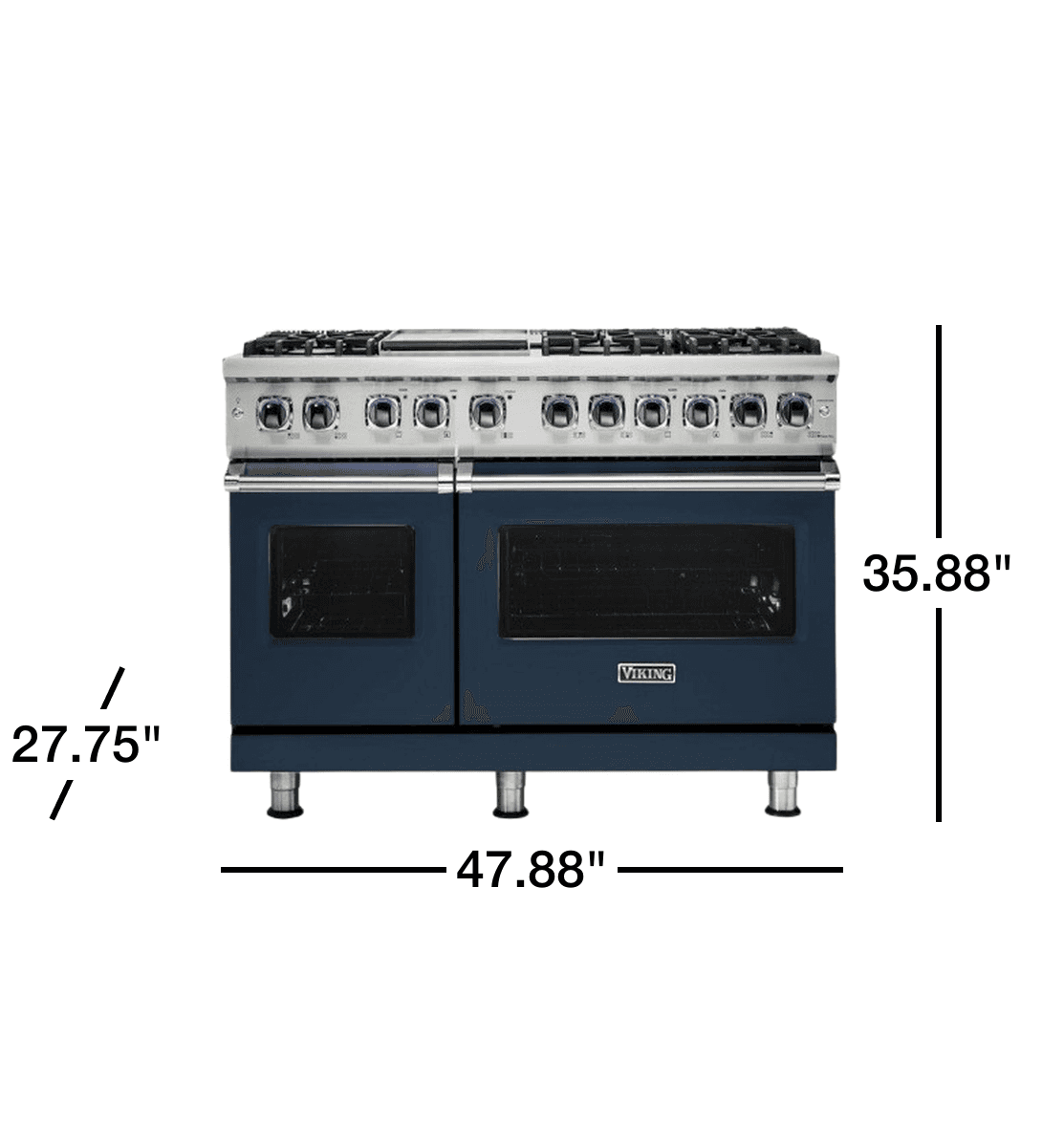 Transform your kitchen into a gourmet haven with the Viking 48""W./24""D. Gas Sealed Burner Range in Slate Blue."