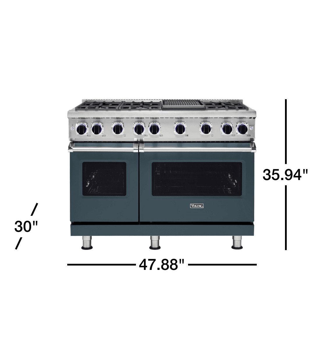 Viking 48 Inch Pro-Style Freestanding Gas Range with Viking Elevation™ Burners, VariSimmer™ Setting, SureSpark™ Ignition System, SoftLit™ LED Lights and 6 High-Performance Cooking Modes: Squall