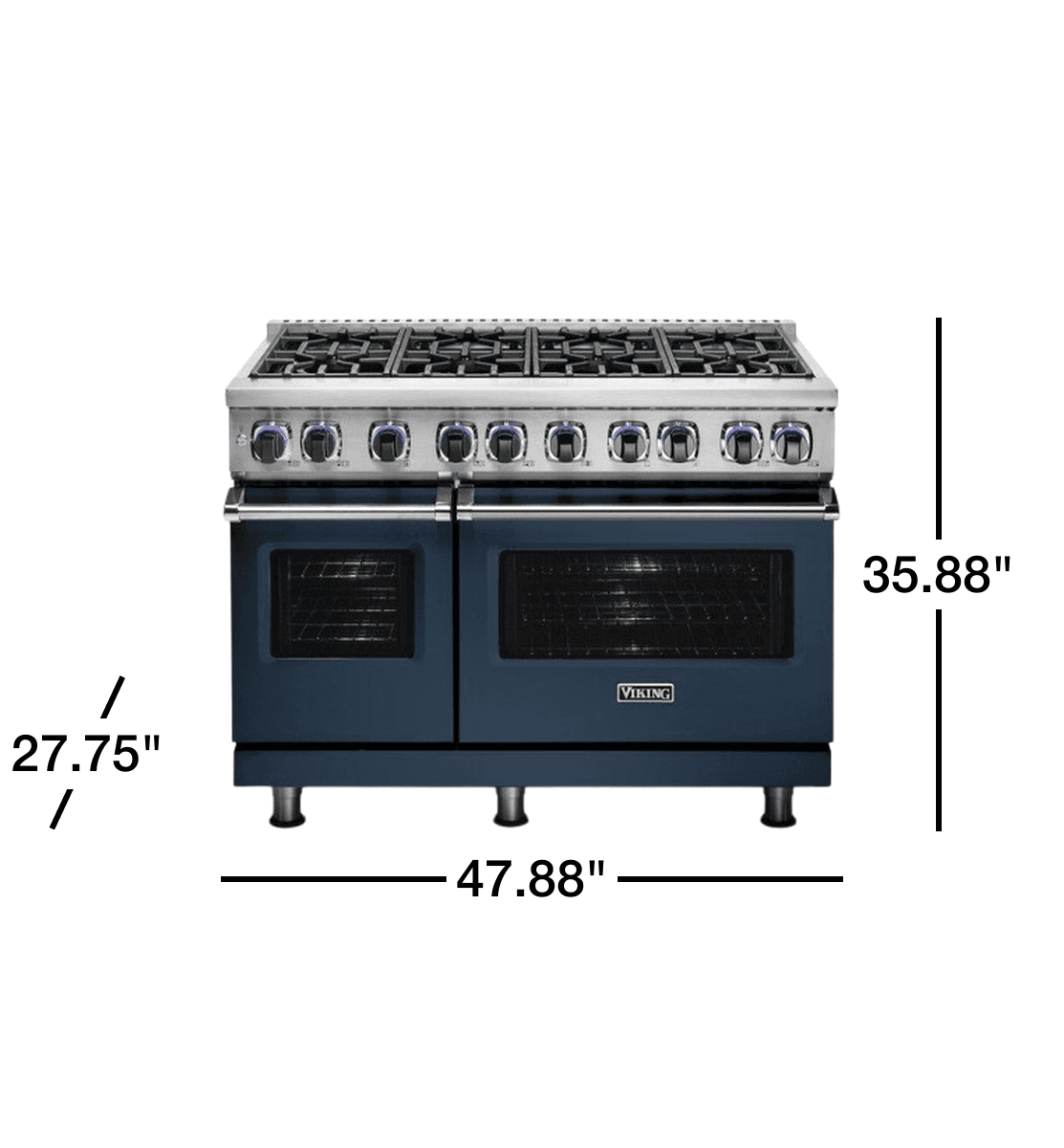 Whether you're a professional chef or a passionate home cook, the Viking 48""W./24""D. Gas Sealed Burner Range in Slate Blue is the ultimate addition to your kitchen, combining style, performance, and reliability. Transform your cooking space and unleash your culinary creativity with this exceptional range."