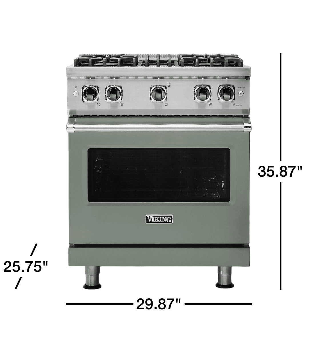 -Elevate your culinary experience with the Viking 30"W./24"D. Gas Sealed Burner Range, a masterpiece of design and functionality. This premium range, finished in a stunning eucalyptus hue, is not just an appliance but a statement piece for your kitchen. This product is part of the luxury sub-category and premium sub-category series.