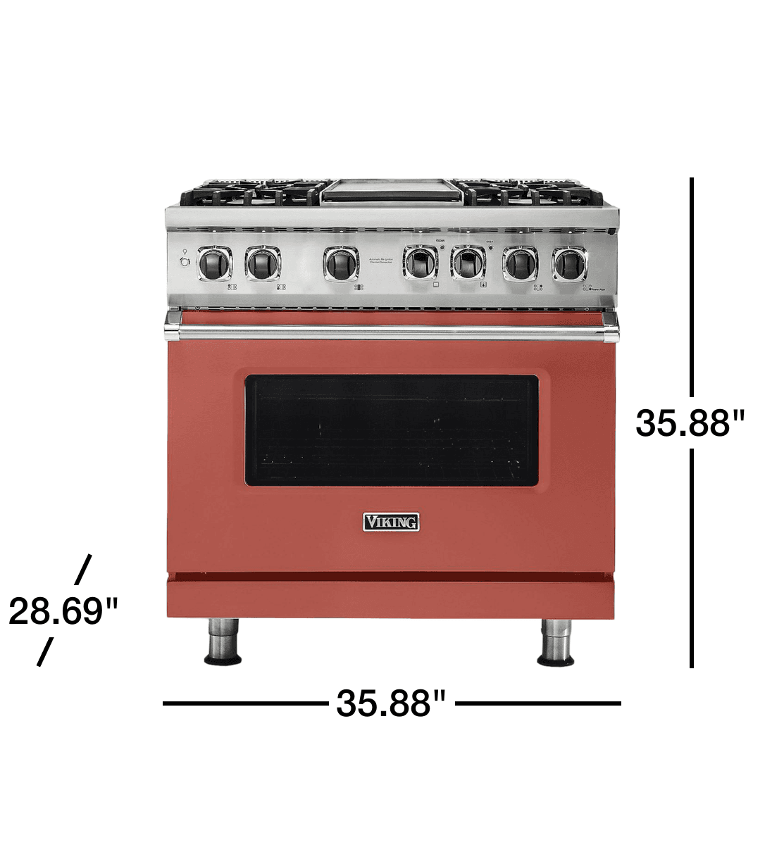 Viking 36"W./24"D. Dual Fuel Self-Clean Sealed Burner Range - 4 Burners/Griddle - Spiced Cider VDR5364GSC -Elevate your culinary experience with the Viking 36"W./24"D. Dual Fuel Self-Clean Sealed Burner Range in the stunning Spiced Cider finish. This premium kitchen appliance seamlessly blends professional-grade performance with sophisticated design, making it the centerpiece of any modern kitchen. This product is part of the luxury sub-category and premium sub-category series.