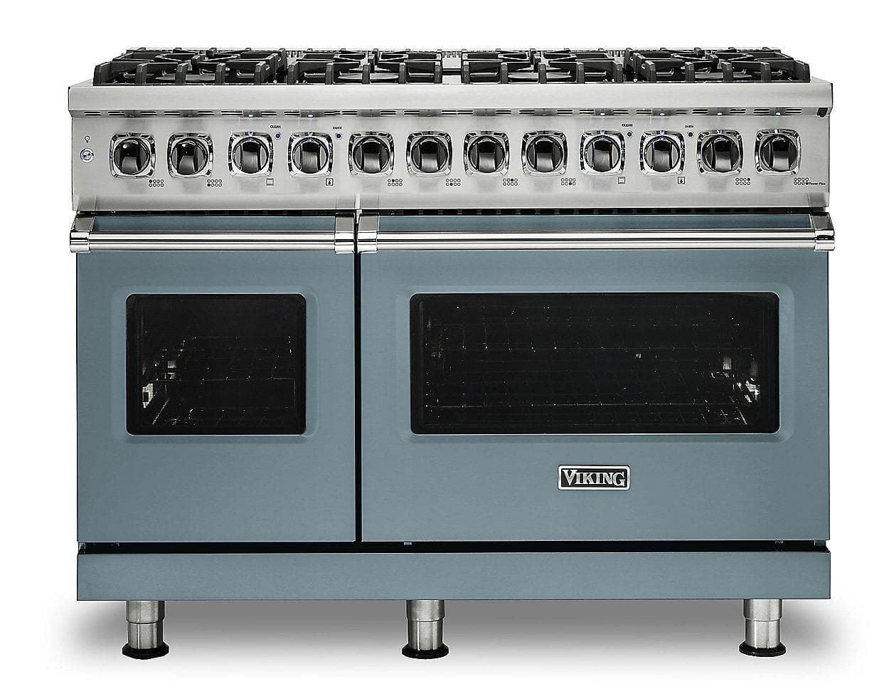 Viking 48"W./24"D. Dual Fuel Self-Clean Sealed Burner Range - 8 Burners - November Sky (Model: VDR5488BNS) -Elevate your culinary experience with the Viking 48"W./24"D. Dual Fuel Self-Clean Sealed Burner Range, a masterpiece of design and functionality. This premium range, finished in the sophisticated and contemporary November Sky hue, is engineered to meet the demands of both professional chefs and passionate home cooks. This product is part of the luxury sub-category and premium sub-category series.