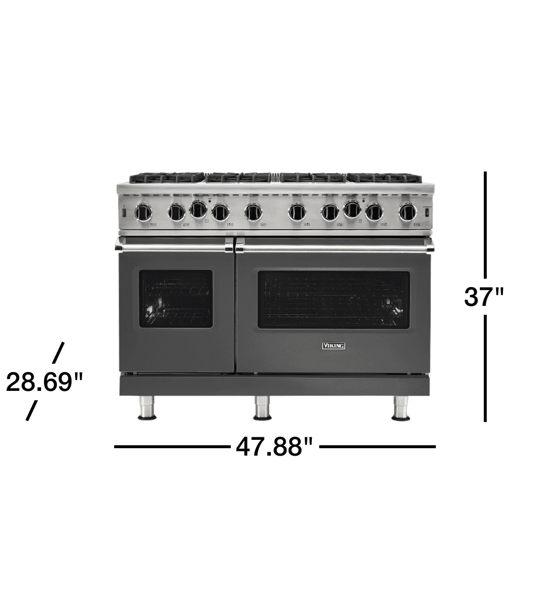 Viking 5 Series 48" Gas Range with 8 Open Burners, Double Oven, Continuous Grates - Damascus Gray