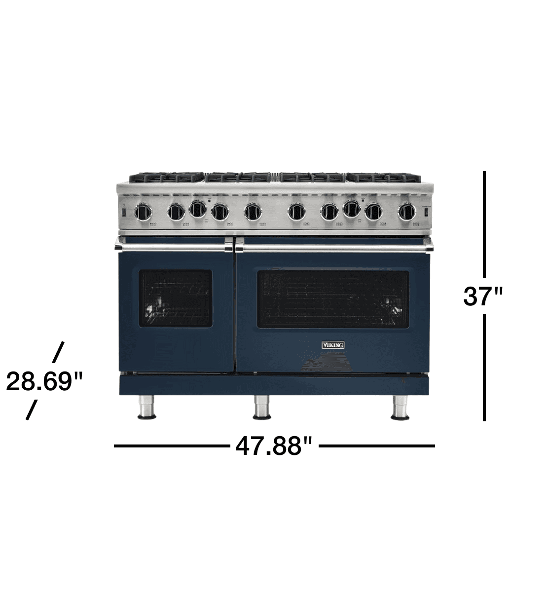 Viking 5 Series 48" Gas Range with 8 Open Burners, Double Oven, Continuous Grates - Slate Blue