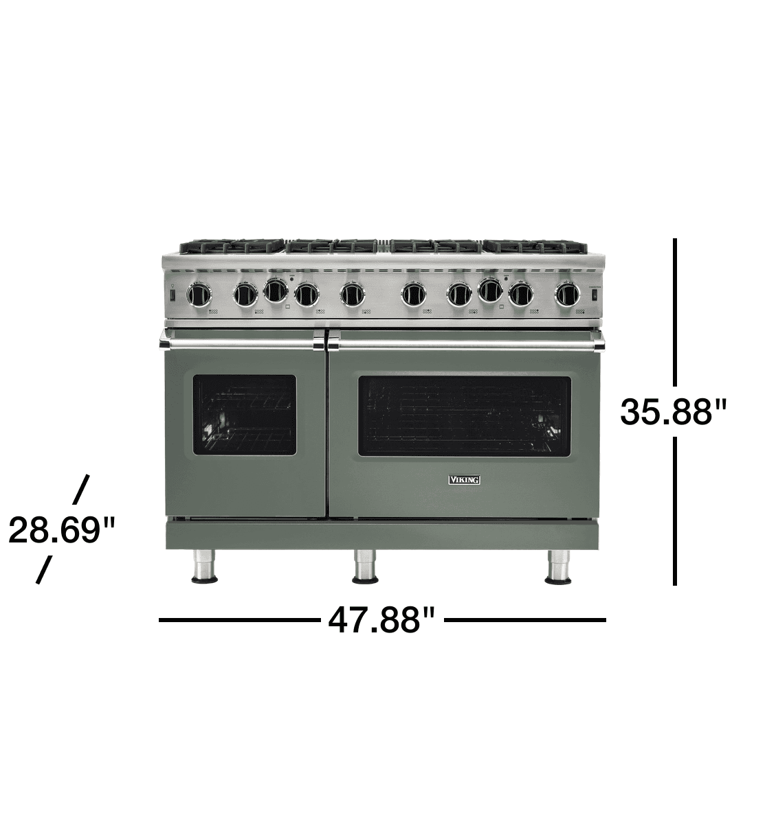 Viking 5 Series 48" Open Burner Gas Range with 8 Open Burners, Double Oven, 6.1 cu. ft. Total Oven Capacity, Continuous Grates - Eucalyptus