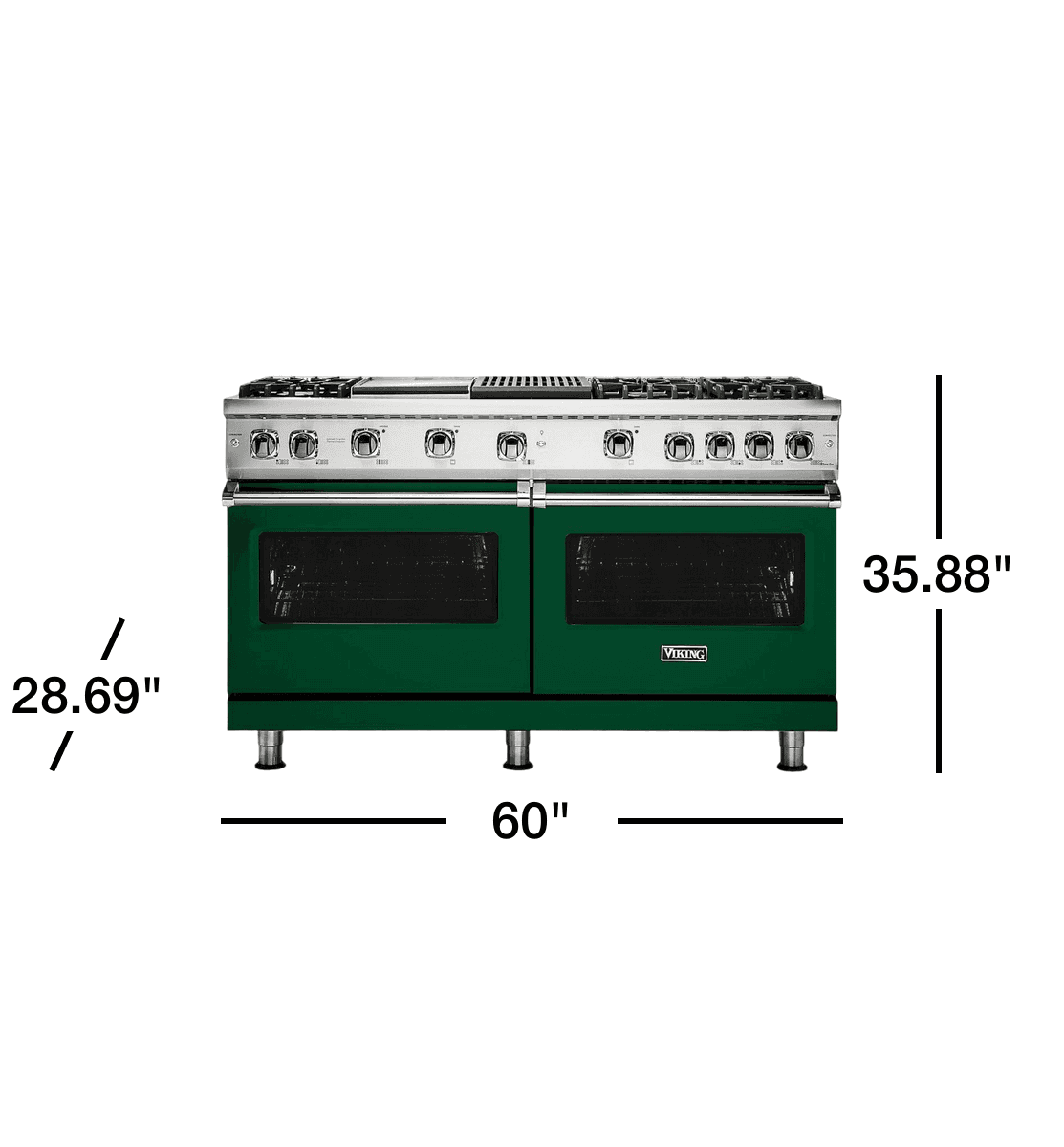 "Viking 60""W./24""D. Gas Sealed Burner Range - 6 Burners/Griddle & Grill - Ivy - LP VGR5606GQIVLP -Elevate your culinary experience with the Viking 60""W./24""D. Gas Sealed Burner Range, a masterpiece of design and functionality. This professional-grade range, finished in a stunning Ivy hue, is engineered to meet the demands of both home chefs and culinary professionals. -