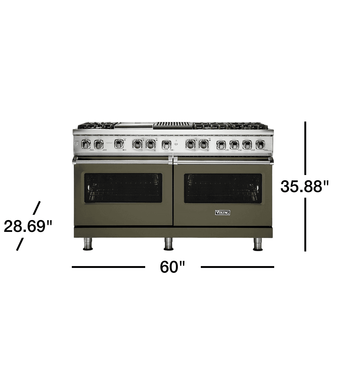-Elevate your culinary experience with the Viking 60""W./24""D. Dual Fuel Self-Clean Sealed Burner Range, a masterpiece of design and functionality. This premium range, finished in a sophisticated Martini hue, is engineered to meet the demands of both professional chefs and passionate home cooks.